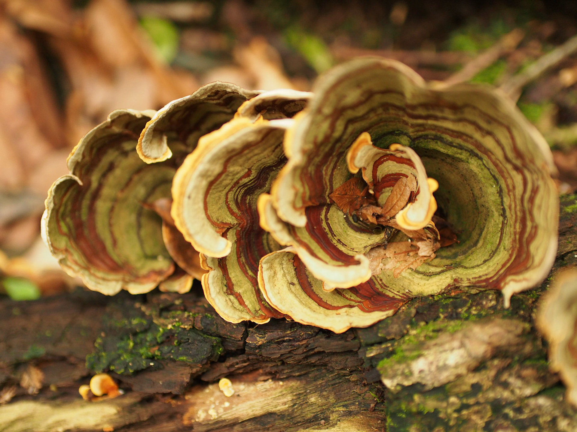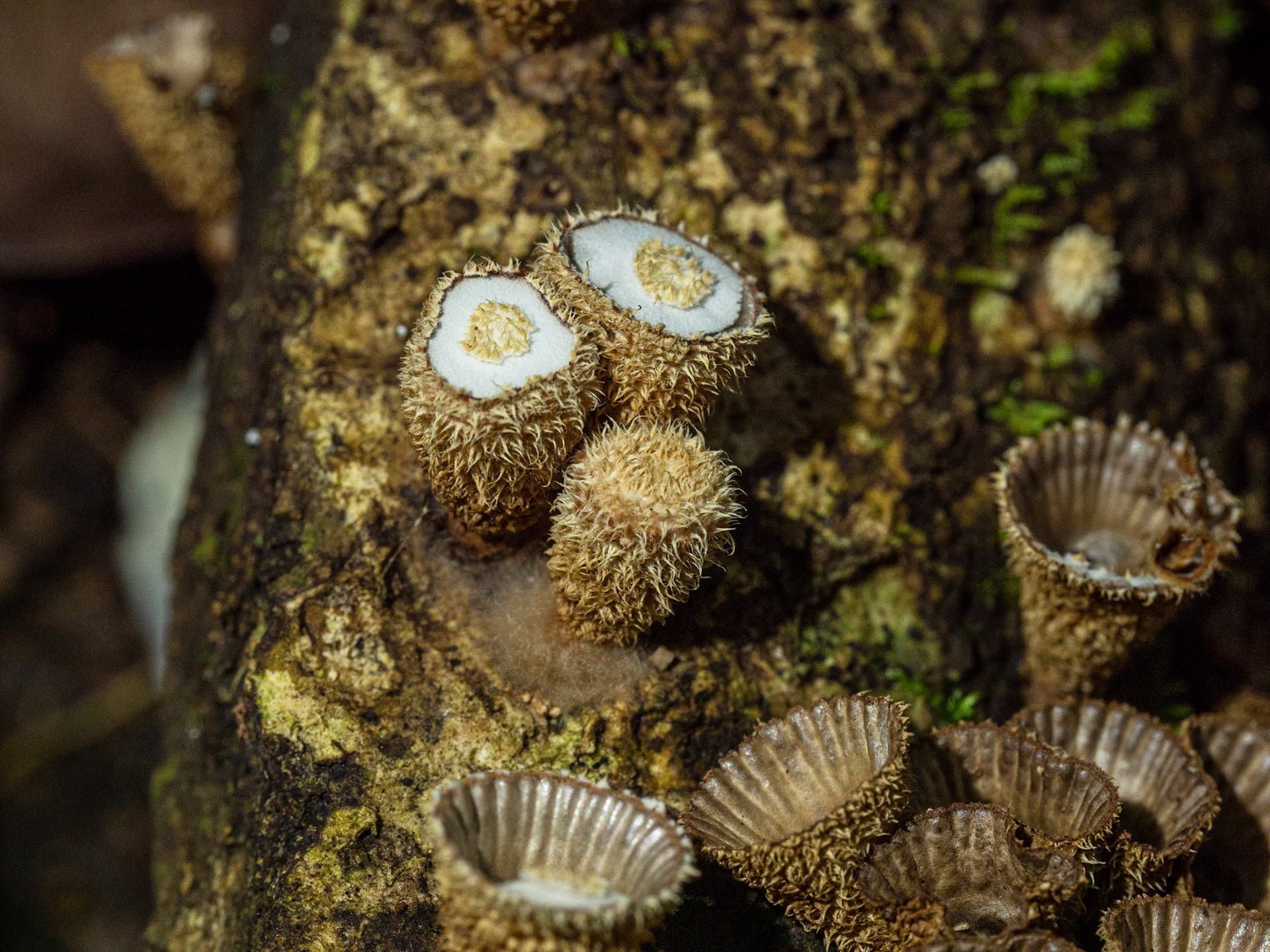 Growing on a tree these mushrooms were hiding in plain sight. Till the sunlight filtered through, spotlighting them perfectly.